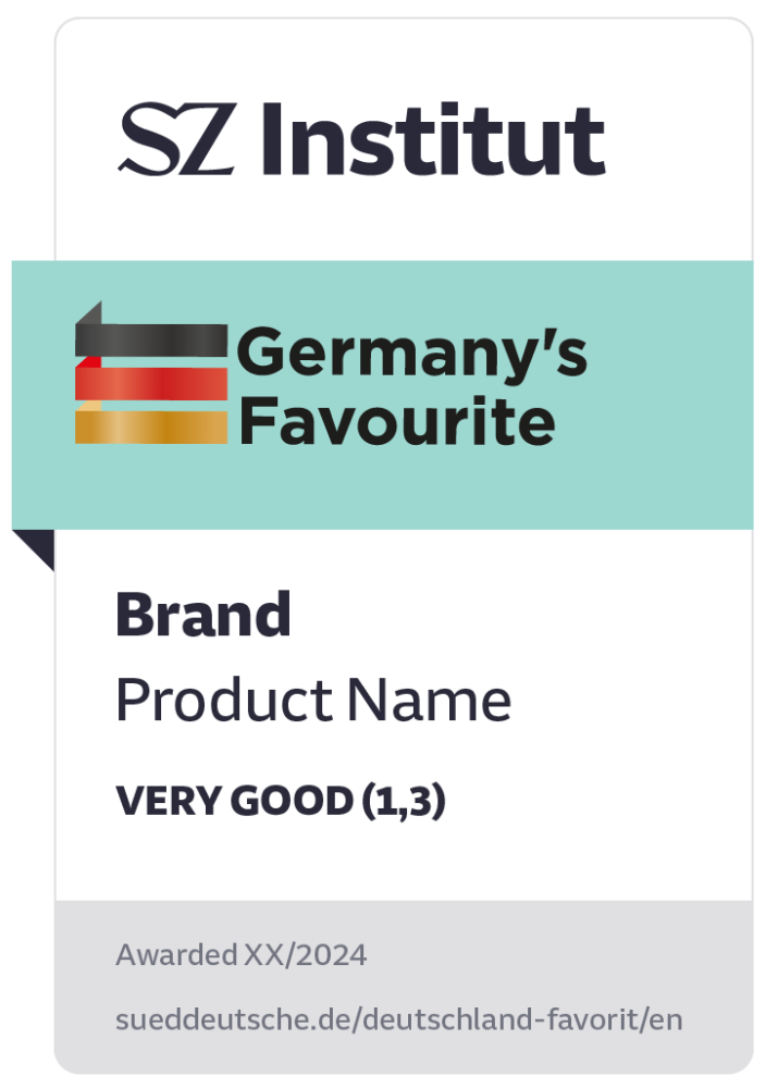 The Germany‘s Favourite is an award that is given by real consumers on the basis of an evaluation. Initiated by the SZ Institut of the Süddeutsche Zeitung and carried out by the market research company INNOFACT, this award promises a high level of credibility and independence. It is a seal of quality that offers consumers clear guidance when choosing products. The award is based on comprehensive and independent consumer reviews and reflects the opinion of potential customers. Whether it’s a relaxing face mask, an ergonomic school bag for children or environmentally friendly fertiliser for the home garden, the Germany‘s Favourite provides customers with the guidance they need to make informed purchasing decisions.