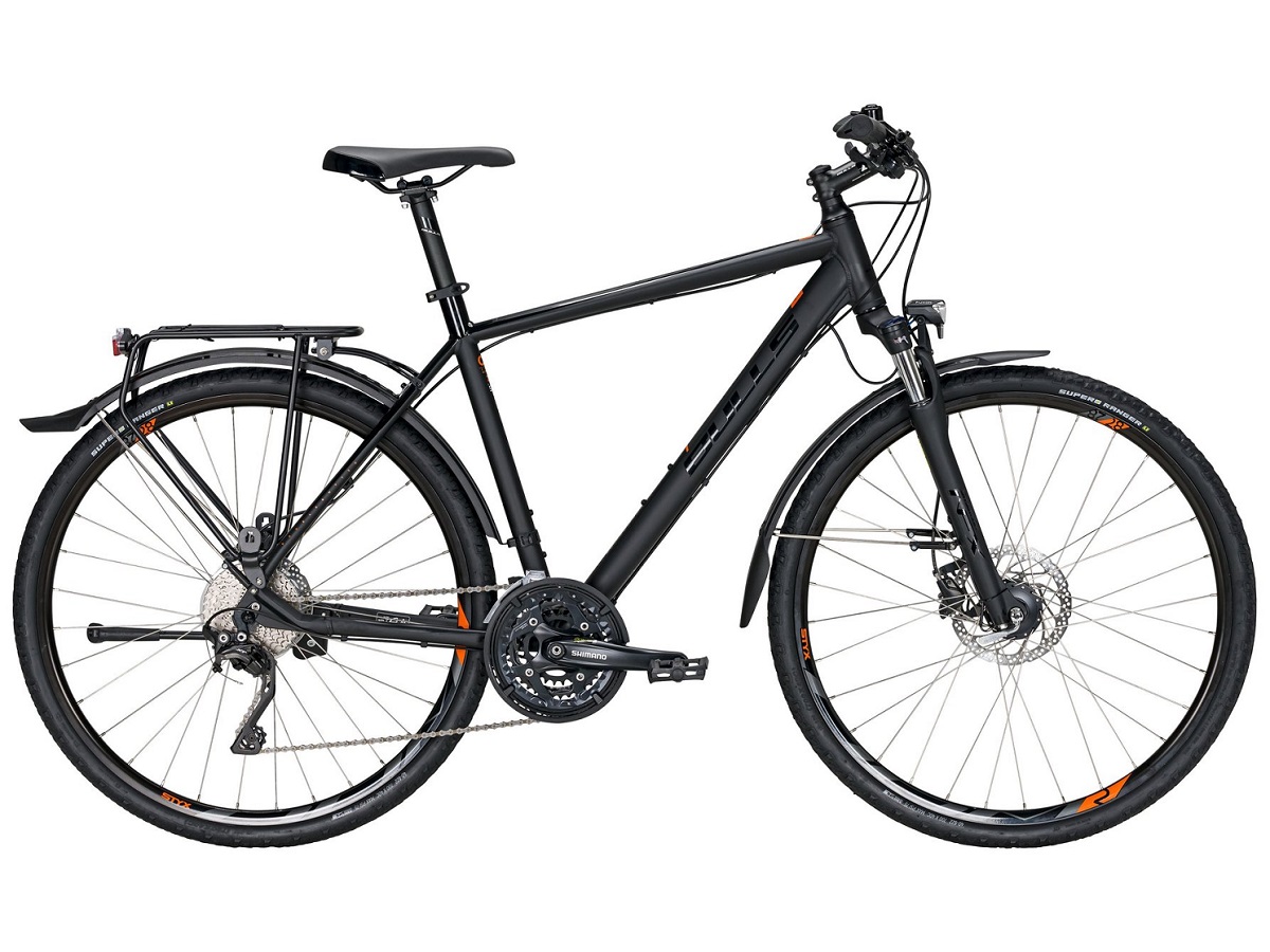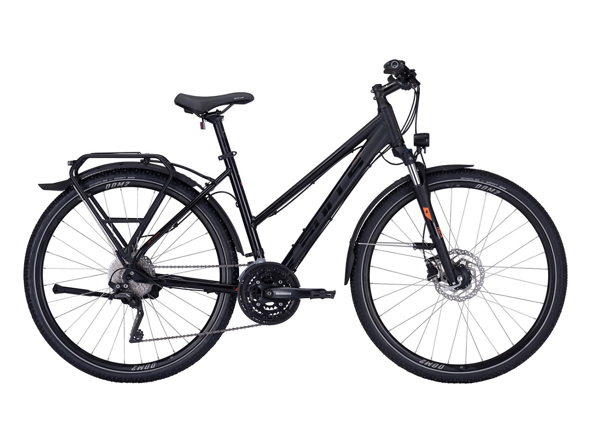 The Street Mover makes cuts no corners in their equipment. With the 27-speed SHIMANO gears, the fast cross bike is also optimally equipped for mountain stages. For necessary driving safety, the powerful hydraulic TEKTRO disc brakes and the puncture-protected and particularly grippy SUPERO Ranger tires are provided. Other highlights are the SR Suntour suspension fork with lockout and the robust and versatile MonkeyLoad system rack.