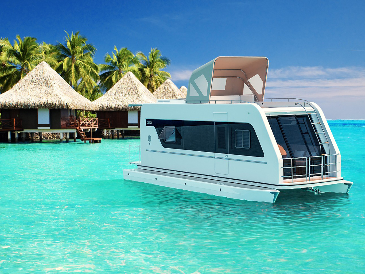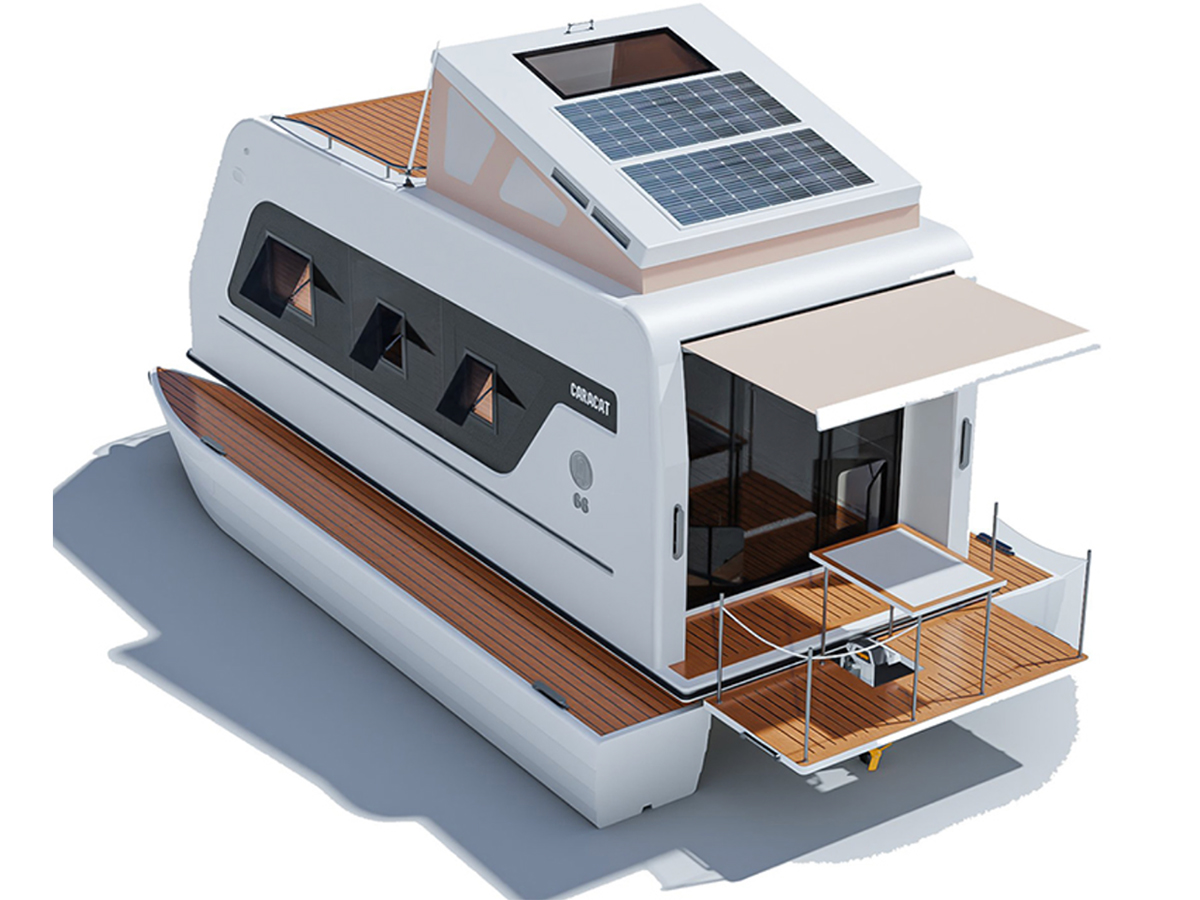 It’s more than a catamaran, more than a caravan, more than a houseboat. Through the Caracat patent, we bring flexibility to the water. Here is a caravan that is only 2.5 meters wide on land and can be lowered into the water with just a few electrical movements. The pontoons create a boat with which you can travel safely on the water with a width of 3.70 m. (Sportboot-C approval). The CARACAT 66 has a total length of 6.6 meters and space for 6 people to sleep.