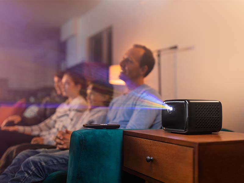 Der intelligente und vollständig kabellose native Full-HD-Projektor mit beeindruckend lebensechten Bildern kann überall eingesetzt werden. Integrierter Akku, Android-Betriebssystem, unsichtbares oberes Touchpad, WLAN, Bluetooth und USB-C-Konnektivität. Autofokus, Digitalzoom und automatische Trapezkorrektur sorgen für ein gestochen scharfes Bild bis zu 300 cm in Full-HD.